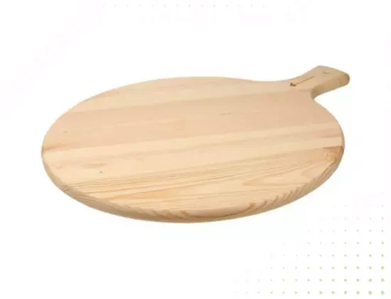 لوح تقطيع بيتزا خشبي بمقبض – دائري من ميسكا – خشبي فاتح