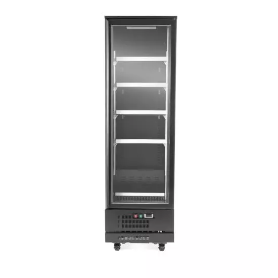 فريزر عرض عمودي من الفولاذ المقاوم للصدأ مع 1 باب زجاجي – 340 لتر من بيوكيت – أسود